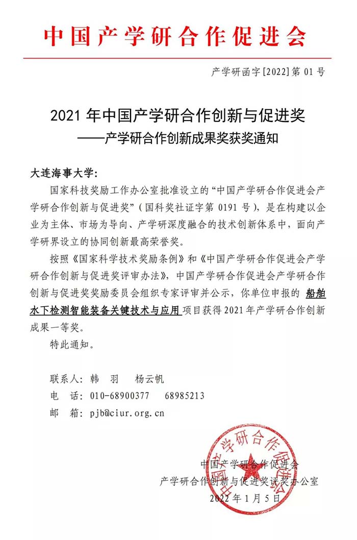 2022年新年伊始,中國(guó)產(chǎn)學(xué)研合作促進(jìn)會(huì)公示了2021年中國(guó)產(chǎn)學(xué)研合作創(chuàng)新與促進(jìn)獎(jiǎng)獲獎(jiǎng)名單,博雅工道(北京)機(jī)器人科技有限公司(以下簡(jiǎn)稱“博雅工道”)聯(lián)合大連海事大學(xué)、大連中遠(yuǎn)川崎船舶工程有限公司、海虹老人北亞投資有限公司共同申報(bào)的;船舶水下檢測(cè)智能裝備關(guān)鍵技術(shù)與應(yīng)用項(xiàng)目榮獲2021年產(chǎn)學(xué)研合作創(chuàng)新成果一等獎(jiǎng)。