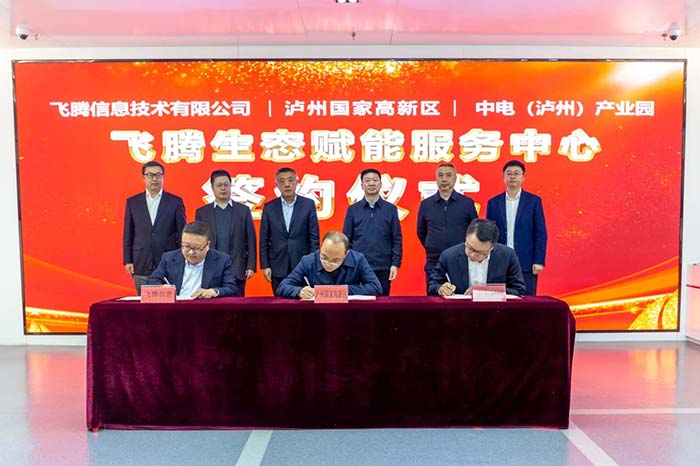 3月1日,飛騰公司與瀘州國家高新區、中電(瀘州)產業園在飛騰天津總部舉行“飛騰生態賦能服務中心”三方合作簽約儀式。該服務中心也是西南地區首家“飛騰生態賦能服務中心”。