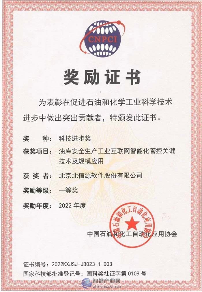 由北信源參與完成的《油庫安全生產工業互聯網智能化管控關鍵技術及規模應用》項目榮獲2022年度中國石油和化工自動化應用協會“科技進步一等獎”。同時,北信源軟件股份有限公司董事長林皓、北京研發中心副總經理劉建兵因在項目中作出突出貢獻,被授予個人“科技進步一等獎”。