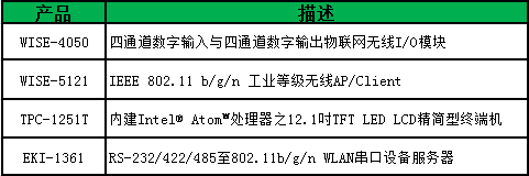 研華的無線解決方案分成三大部份來滿足此項目之需求。首先,以工業(yè)等級的無線APWISE-5121來搭建足以涵蓋整座廠房的Wi-Fi網(wǎng)絡(luò);其次,于工位與AGV充電站均安裝基于以太網(wǎng)絡(luò)的無線I/O模塊WISE-4050,藉此即能采集與傳送工位缺料信息與AGV充電信息;第三部分則是為AGV配置串口設(shè)備服務(wù)器EKI-1361以便連接車上的PLC控制器并上傳數(shù)據(jù)至系統(tǒng),同時,依托精簡型觸控計算機(jī)TPC-1251T負(fù)責(zé)管理AGV的運行數(shù)據(jù)。