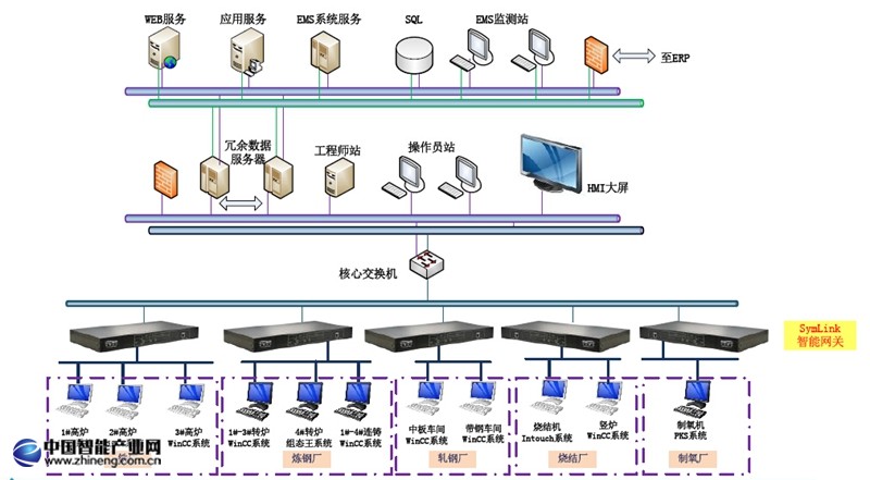 將鐵廠、煉鋼廠、軋鋼廠、燒結(jié)廠、制氧廠等分廠的能源數(shù)據(jù)通過(guò)有線或無(wú)線方式采集進(jìn)入中心系統(tǒng),供數(shù)據(jù)監(jiān)視、報(bào)警、數(shù)據(jù)分析、數(shù)據(jù)計(jì)算、數(shù)據(jù)統(tǒng)計(jì)等用。